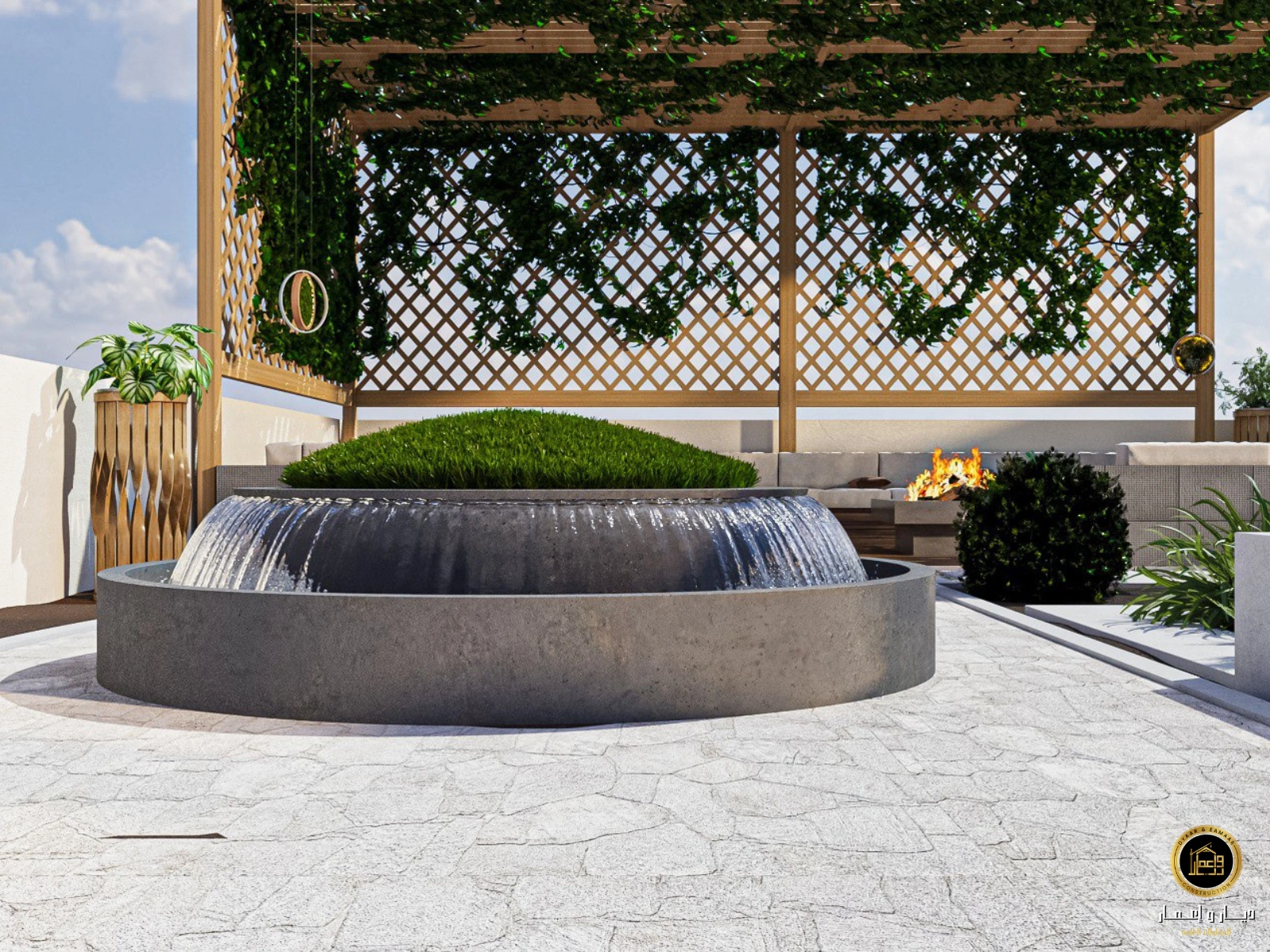 نحرص علي اختيار نباتات ملائمة للبيئة المحلية، مع خامات طبيعية وأرضيات متينة تضيف لمسة جمالية وعملية.