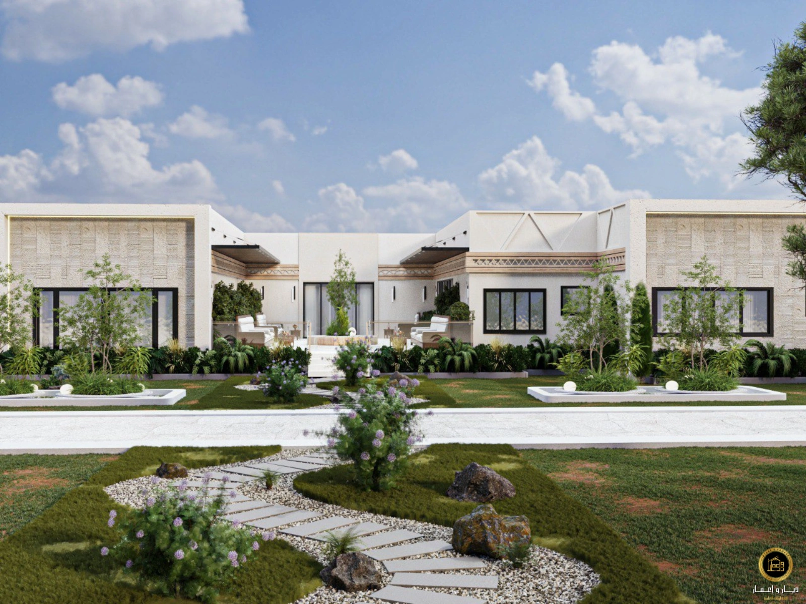 نضع تصورًا يجمع بين الجلسات والمساحات الخضراء ،والممرات المنظمة لتحقيق الانسجام بين الطبيعة والوظيفة.